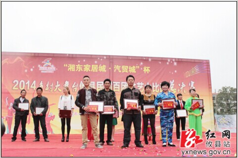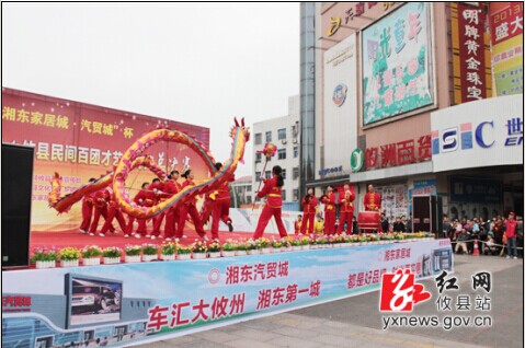 10月30日上午,攸县湘东大市场锣鼓喧天、舞姿蹁跹、激情飞扬。 “欢乐潇湘·放飞梦想”大型群众文化活动暨“湘东家居城·汽贸杯”乡村大舞台·攸县民间“百团”文艺团体才艺大比武总决赛圆满落幕。